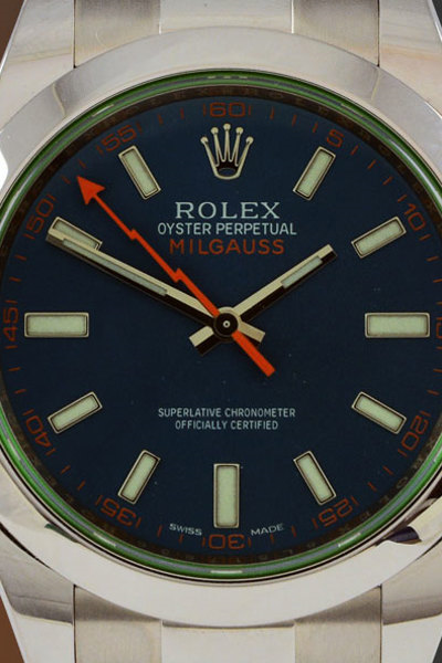 Milgauss - A timepiece specifically designed for scientistswho were increasingly exposed to magnetic fields in the 1950swhich play havoc with a watch’s accuracy and so, spotting an opportunity, Rolex developed its ground-breaking Milgauss.